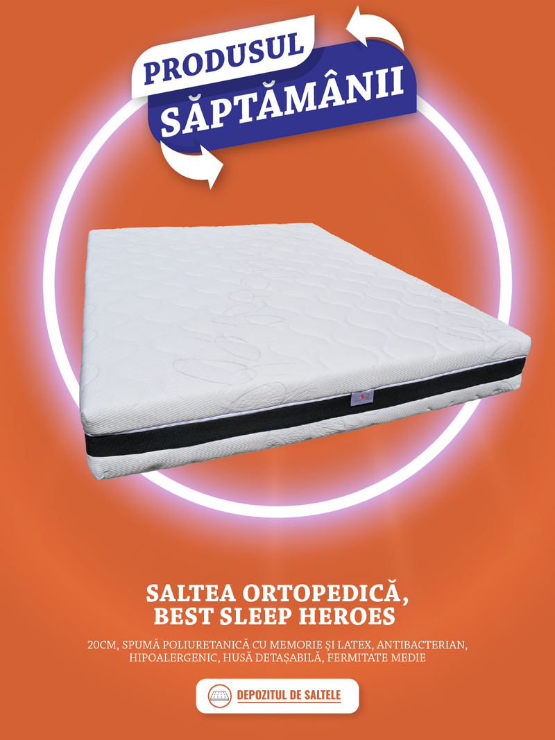 Saltea Ortopedica,Best Sleep Heroes, 20cm, spuma poliuretanica cu memorie si latex, antibacterian,hipoalergenic,husa detasabila,fermitate medie - este pre-comandat si va fi livrat imediat dupa ce revine in stoc.