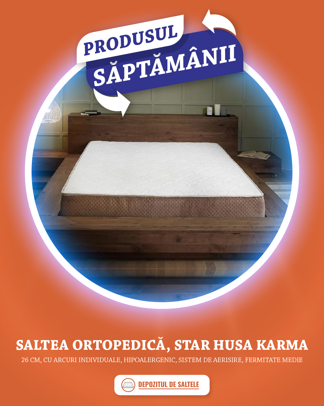 Fermitate medie: Designul saltelei ofera o fermitate medie, potrivita pentru persoanele care doresc un echilibru intre suport ferm si confort.